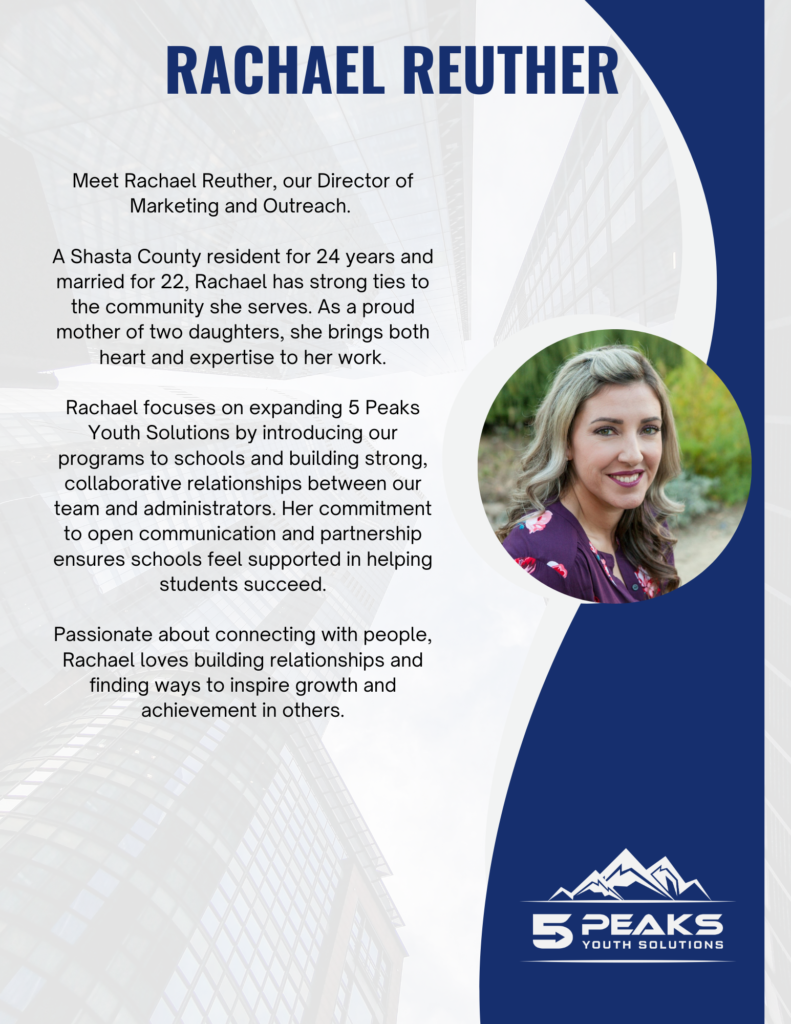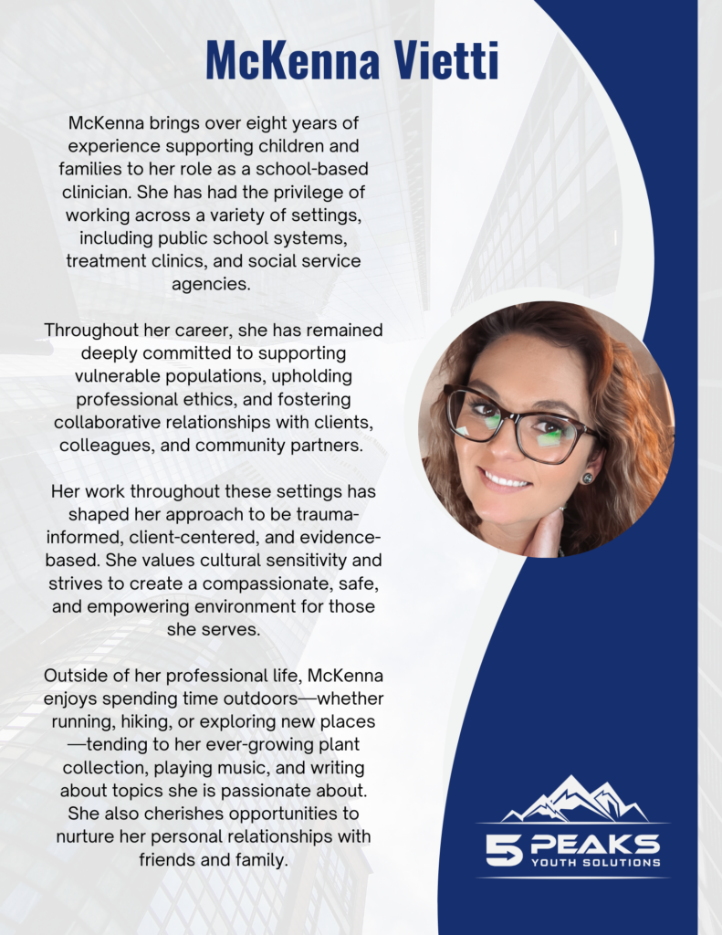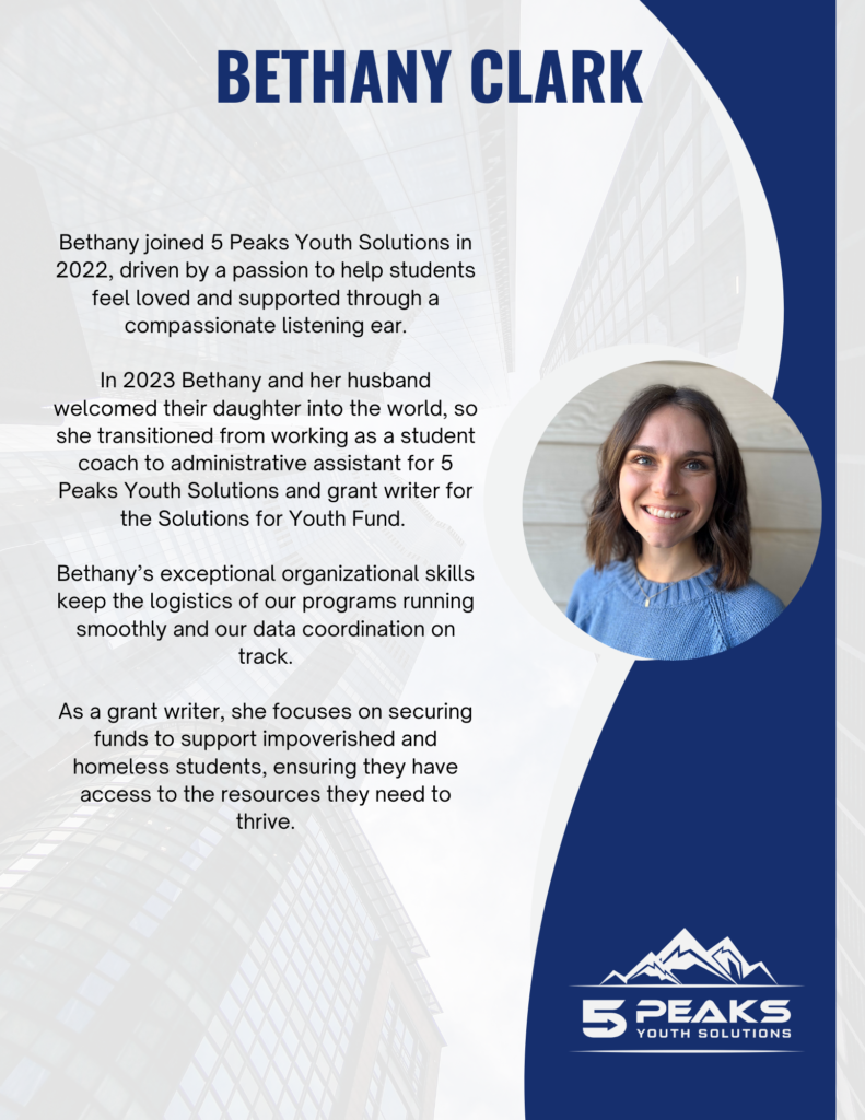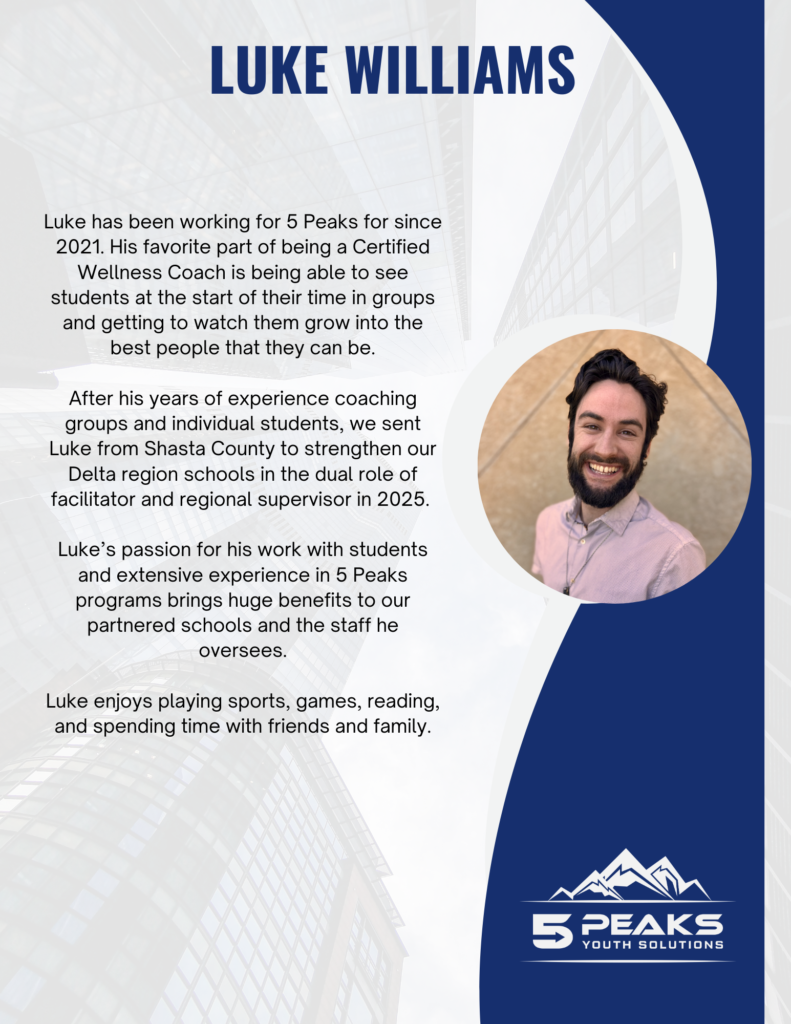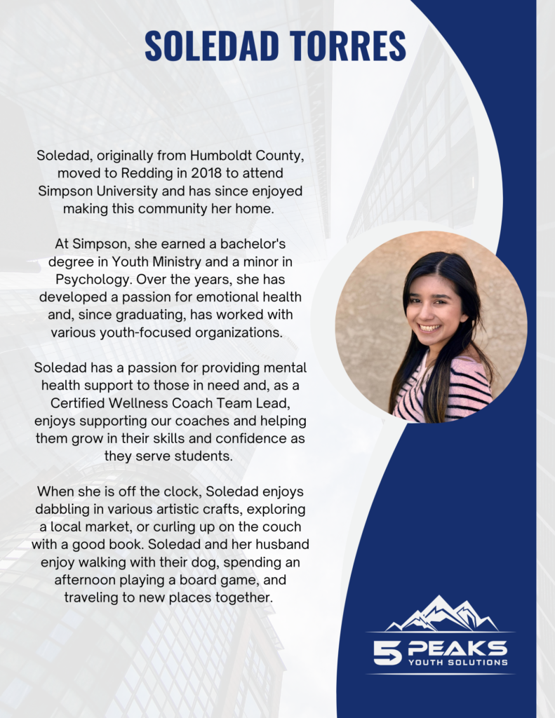 At 5 Peaks, our direct-service team of Mentor-Coaches, Wellness Coaches, and Clinicians works face-to-face with students each day, helping foster growth, resilience, and hope.
